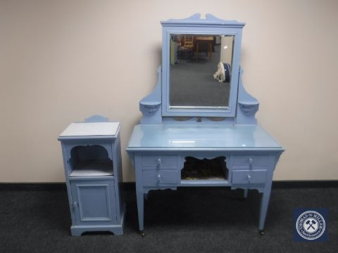 A painted Victorian dressing table with matching pot cupboard