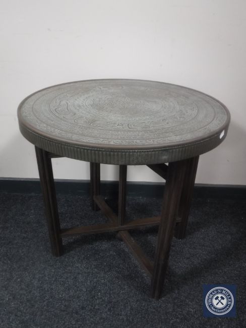 A folding eastern brass topped table