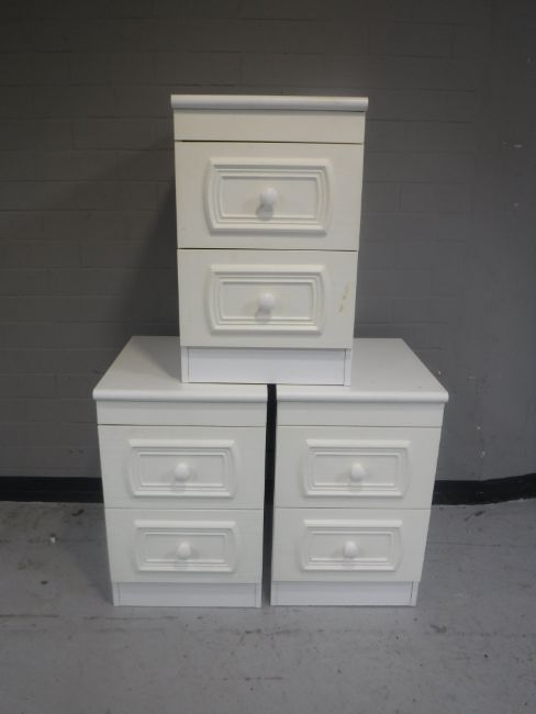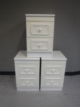 A contemporary white dressing table with stool together with three two-drawer matching bedside chests