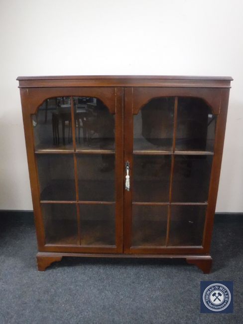 A mahogany double door glazed bookcase on bracket feet