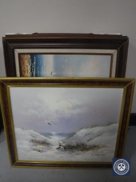 Seven contemporary framed oils on canvas - landscapes and coastal scenes