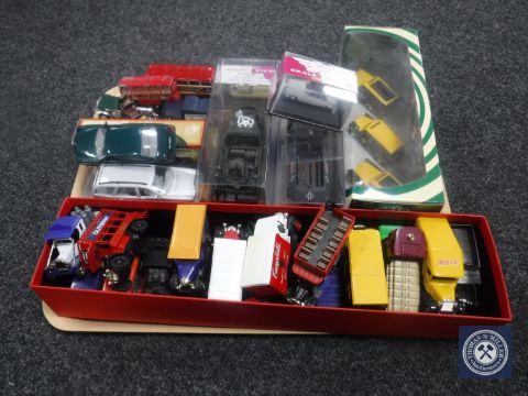A tray of die cast vehicles, Corgi bus etc.