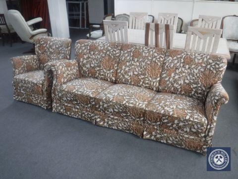 A mid 20th century three seater settee and armchair in floral fabric