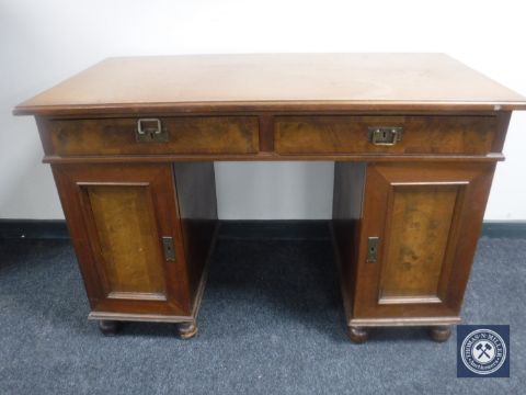 A continental mahogany twin pedestal desk