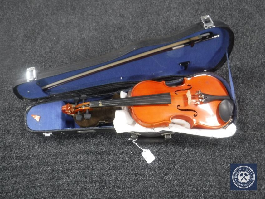 A Chinese child's violin with bow in case