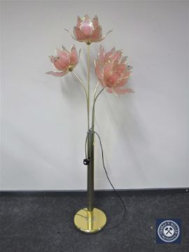 A brass and glass petal floor lamp