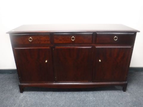 A Stag eight piece dining room suite comprising of sideboard, extending table and six chairs together with matching entertainment stand with two drawers