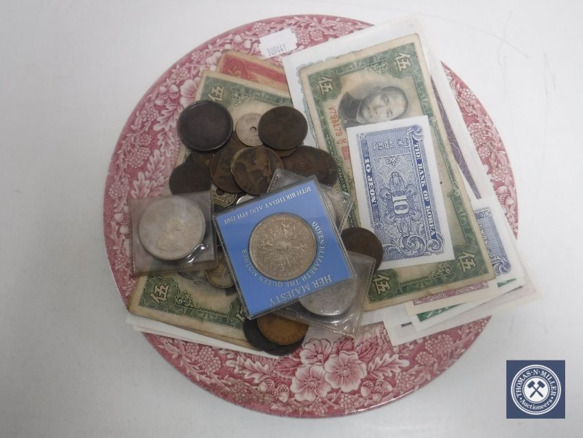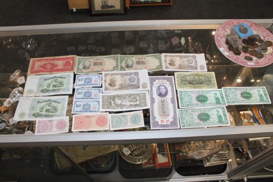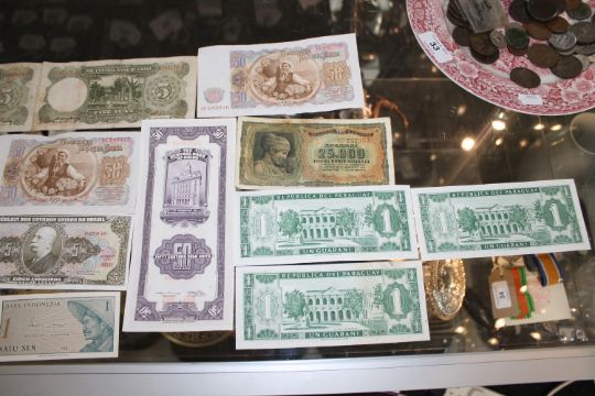 A collection of continental coins, banknotes etc