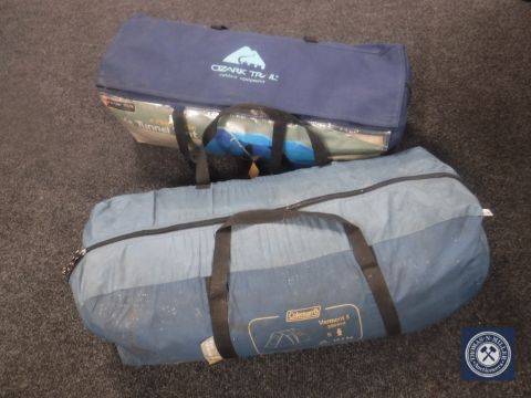 A five-man tent together with a three-pole tunnel tent