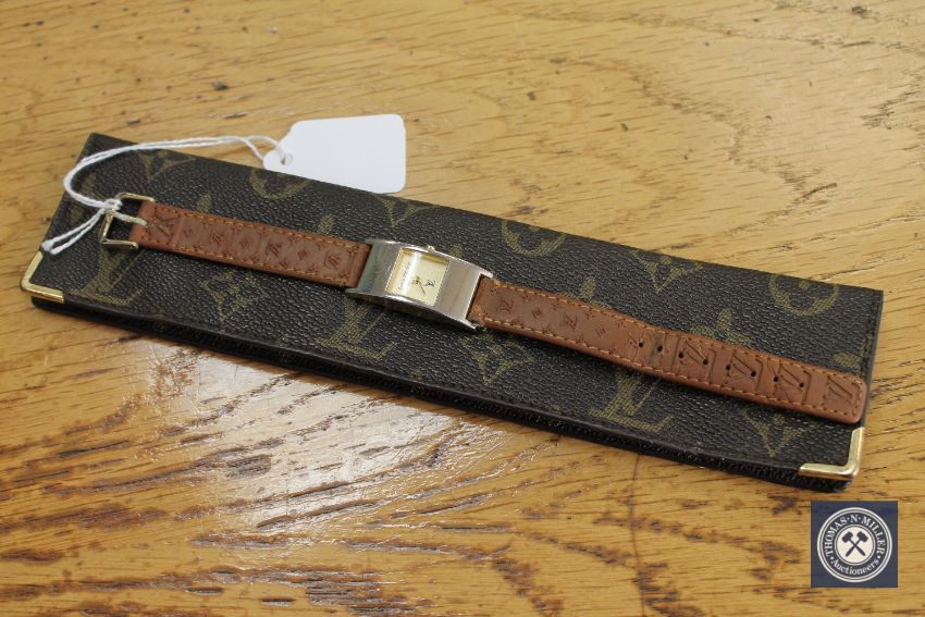 A lady's quartz wristwatch signed Louis Vuitton, in soft case