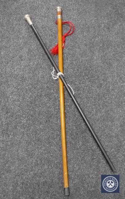 A silver mounted Gentleman's cane together with one further ebonised cane with white metal mount