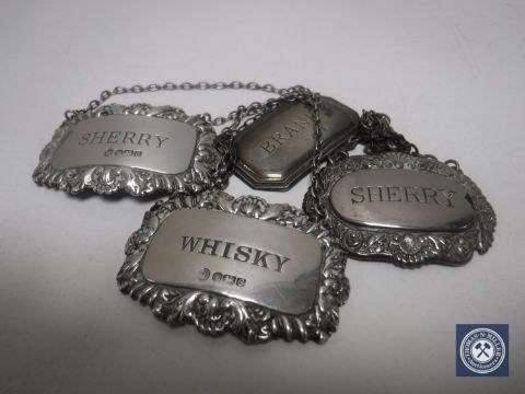 Four silver decanter labels (4)