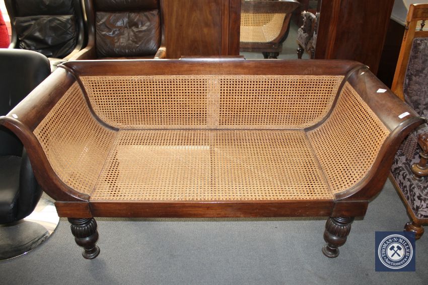 A Regency style mahogany and bergere settee