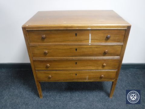 A mid twentieth century walnut four drawer chest