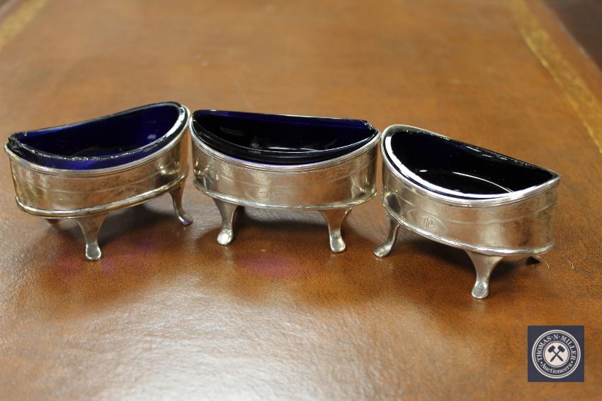 Three Georgian silver salts.
