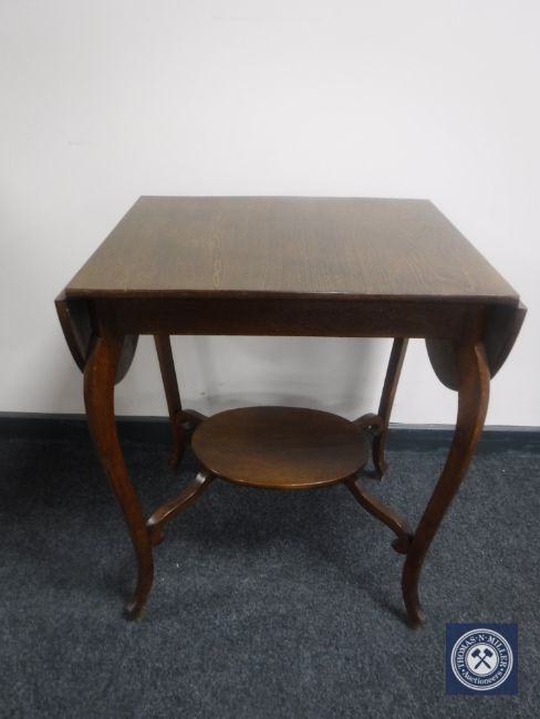A twentieth century oak flap sided occasional table on shaped legs
