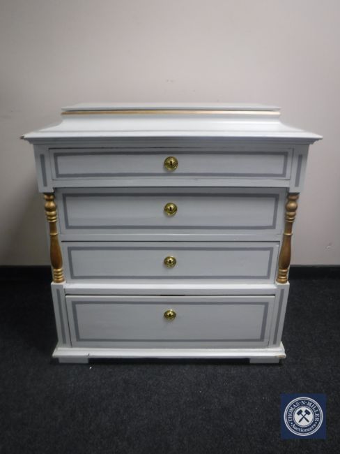 An antique hand painted pine four drawer chest