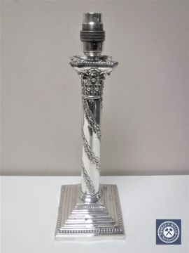 A late nineteenth century silver plated Corinthian column table lamp base