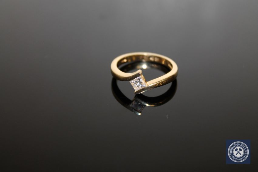 An 18ct gold princess-cut solitaire diamond ring, size M