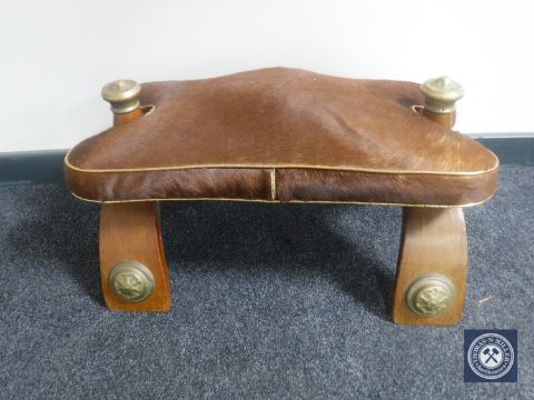A hide upholstered camel stool