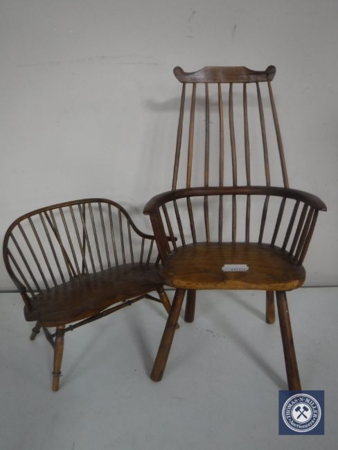 A miniature Windsor style spindle back country armchair and bench