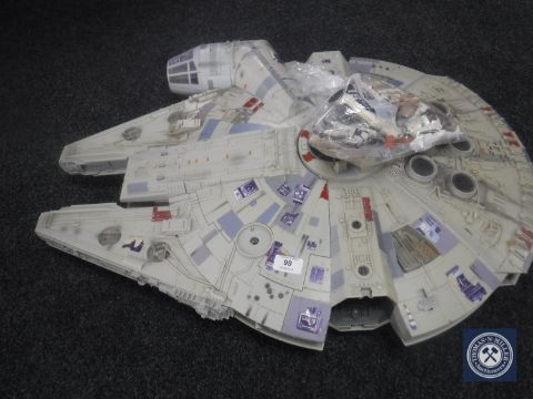 A late twentieth century Star Wars Millennium Falcon together with a bag containing nine Star Wars figures, Luke Skywalker, R2D2 etc