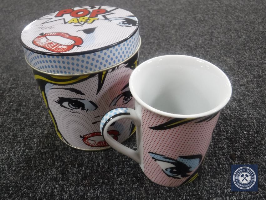 Five boxes of Paul Cardew pop art mug gift sets in tins (60)