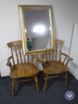 A pair of kitchen armchairs together with a gilt framed mirror