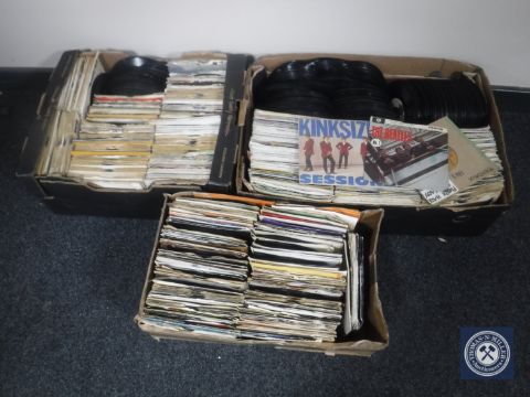 Three boxes of 7" singles including The Beatles, The Kinks, Jimi Hendrix etc