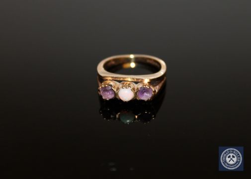 A 9ct gold three stone dress ring, size I.