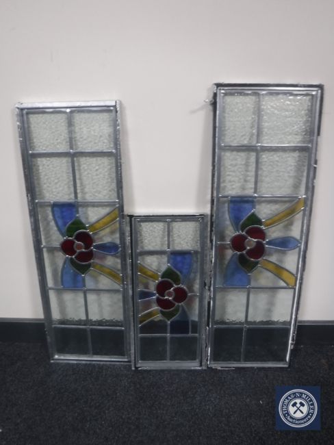 Three double glazed stained glass leaded windows