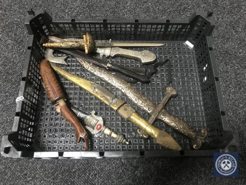 A basket containing seven assorted foreign knives