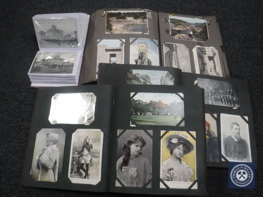 Four good large albums containing antique and later postcards