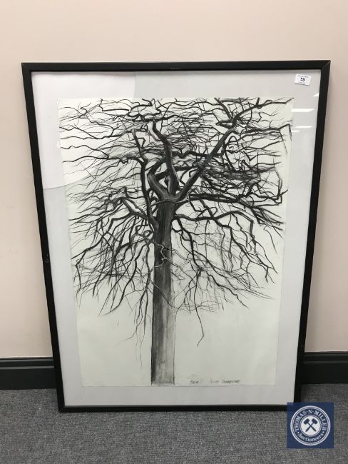 Donald James White : Beech, charcoal study, signed, dated 17.11.83, 84 cm x 59 cm, framed.
