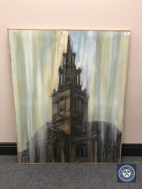 Donald James White : All Saints II, Newcastle upon Tyne, oil on canvas, signed verso and dated 2001, 103 cm x 82 cm, framed.