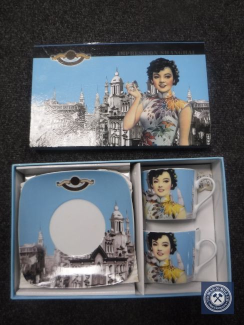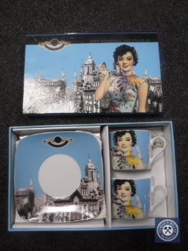 Two boxes containing Paul Cardew Shanghai shoe box coffee sets (24)
