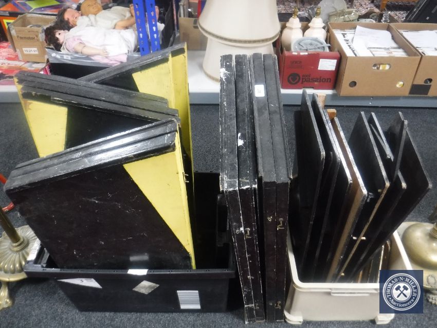 A quantity of wooden folding boards / stands. (Q)