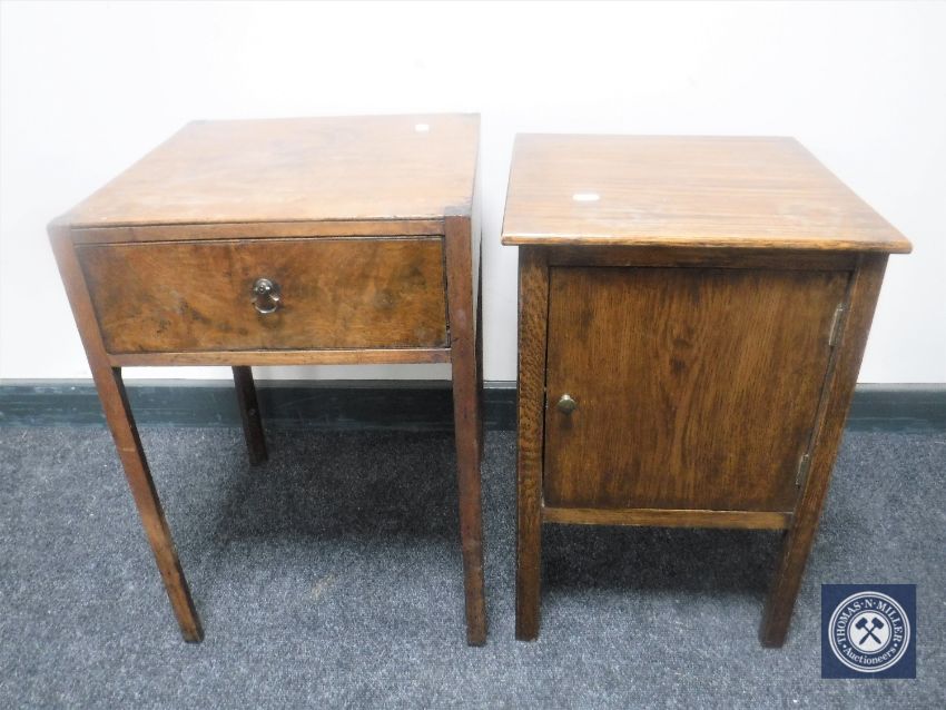 A Victorian walnut side table fitted a drawer and an oak pot cupboard