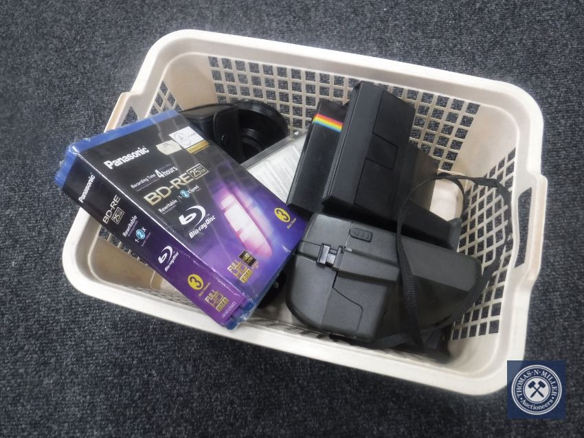 Two Polaroid instant cameras, lenses, lens caps, etc. (Q)