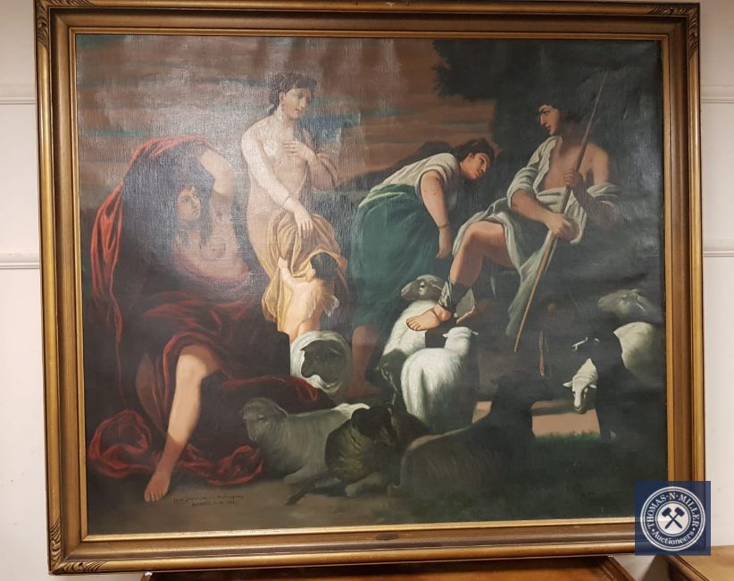 20th Century Continental School, After Luca Giordano (1634-1705), Shepherd and attendants, oil on canvas, 150cm by 124cm, signed Jessen and dated 1942