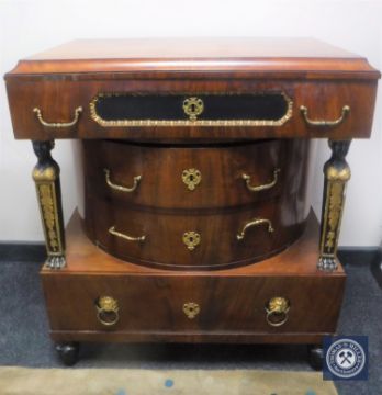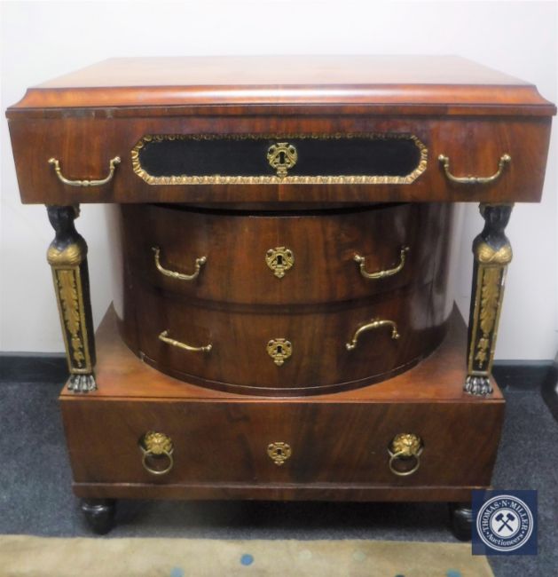 An antique mahogany four drawer Empire style chest with gilt mounts