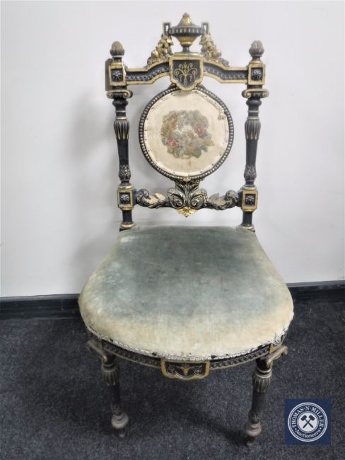 A Victorian ebonised and gilt bedroom chair