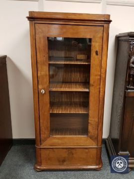 A continental glazed mahogany display cabinet fitted a drawer, width 67cm