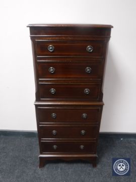 A reproduction inlaid mahogany six drawer chest