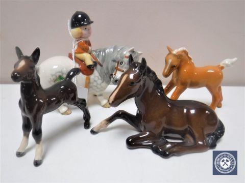 A John Beswick figure of a girl on a grey pony together with three further Beswick foals