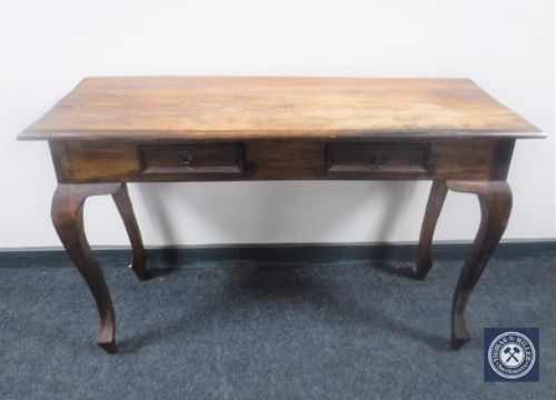 A hardwood side table fitted two drawers