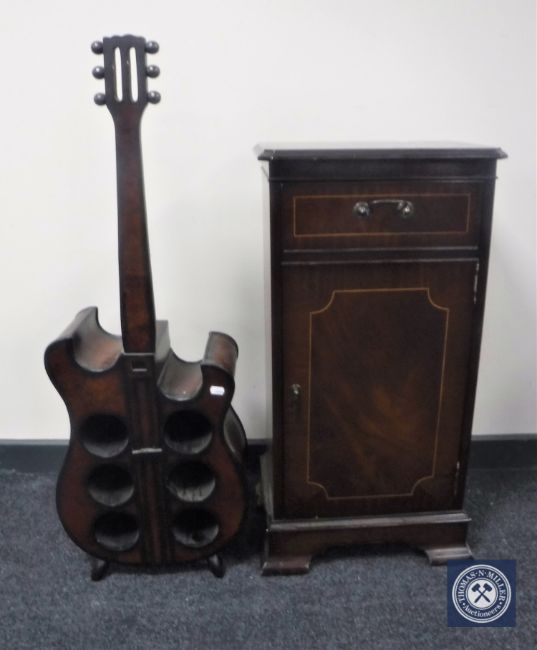 A CD cabinet and a six bottle wine rack in the form of a guitar