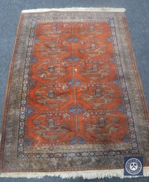 A Bokhara design rug on terracotta ground, 196cm by 132cm