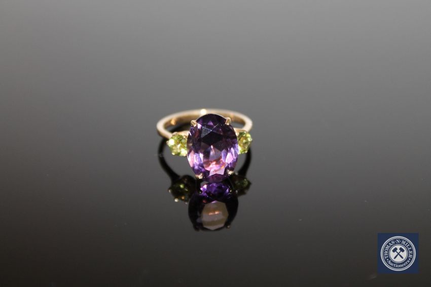 A 9ct gold amethyst and peridot ring, size O