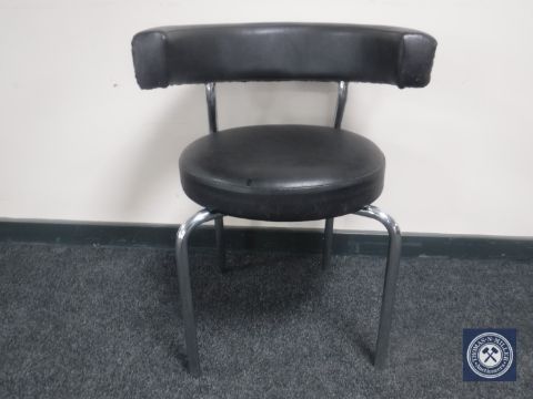 A contemporary black leather and chrome elbow chair